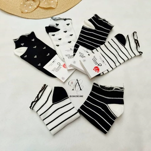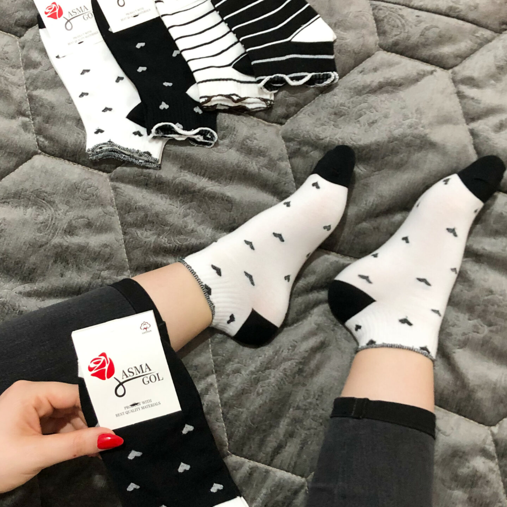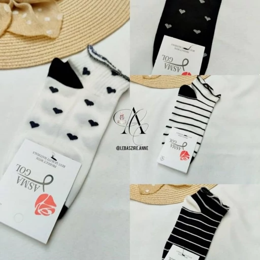 جوراب نیم ساق قلبی و راه راهی ، لب دالبوری فانتزی