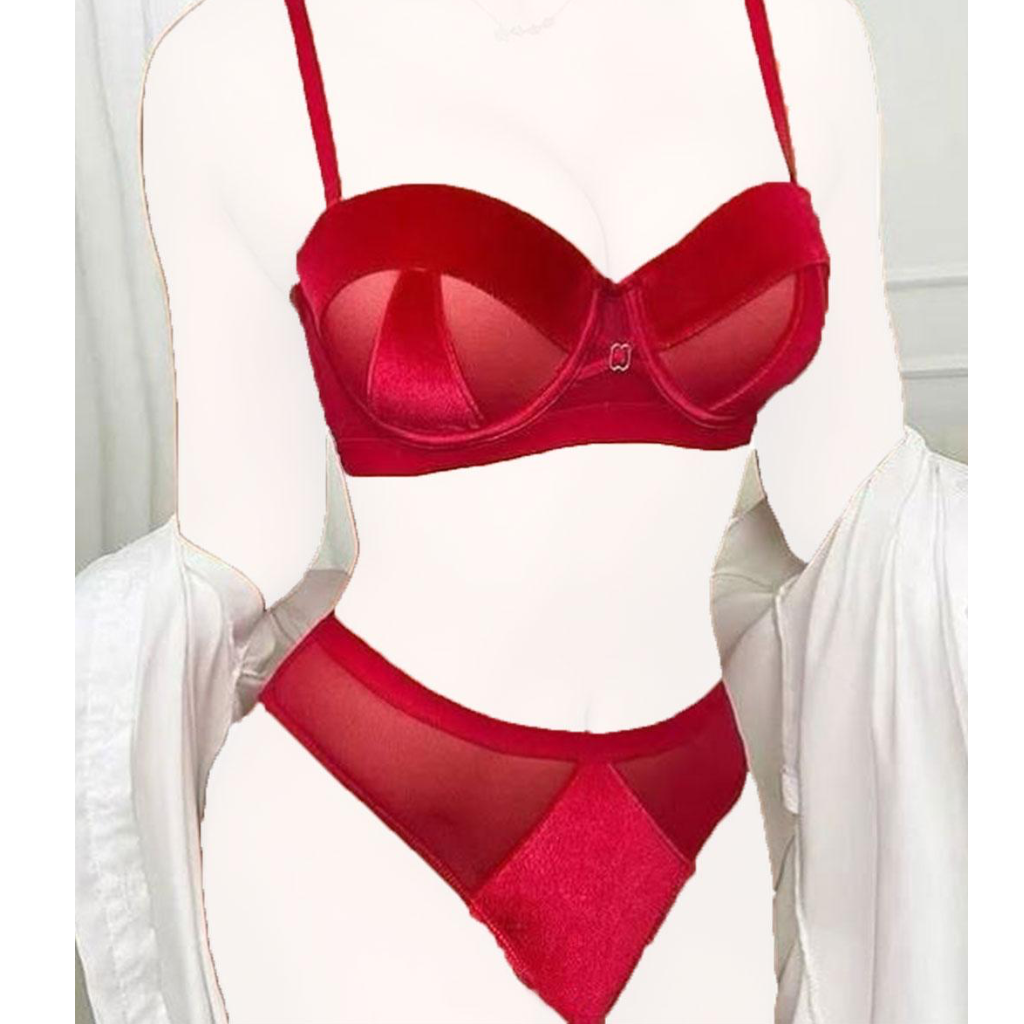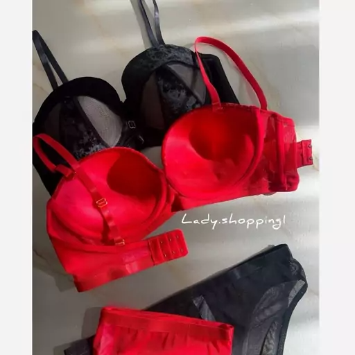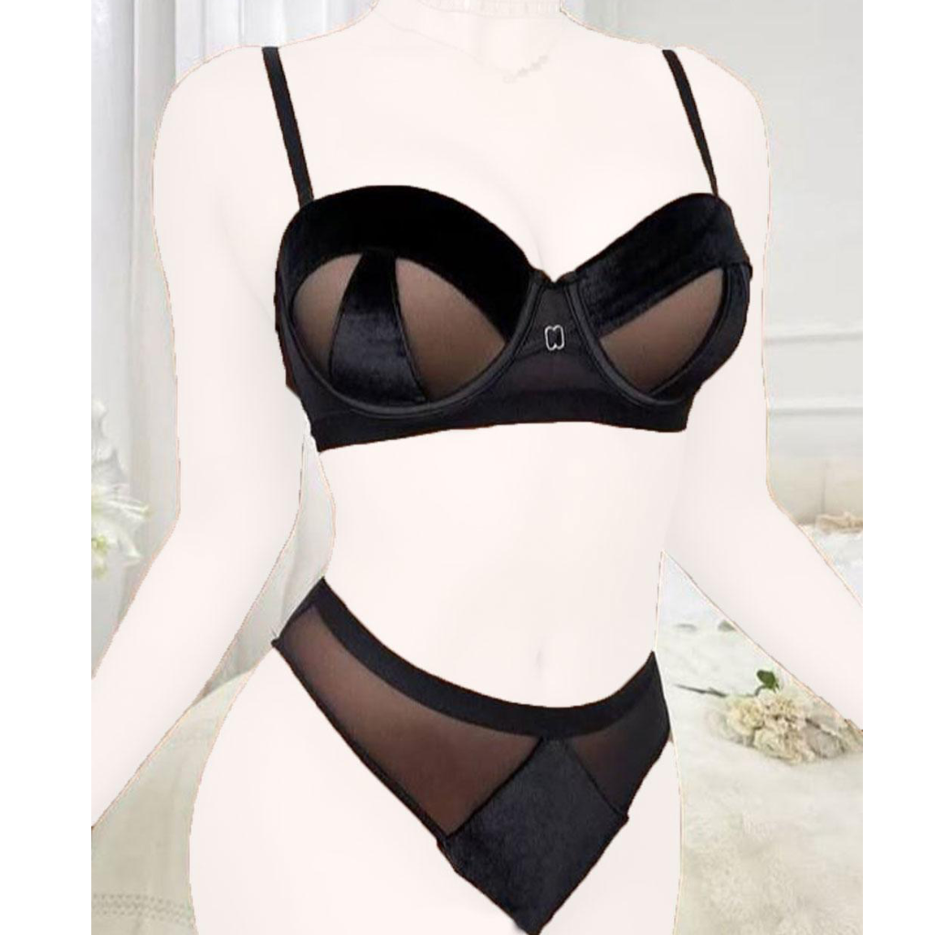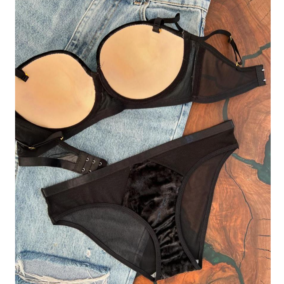 ست شورت و سوتین اسفنجی ترکیب تور و مخمل خارجی