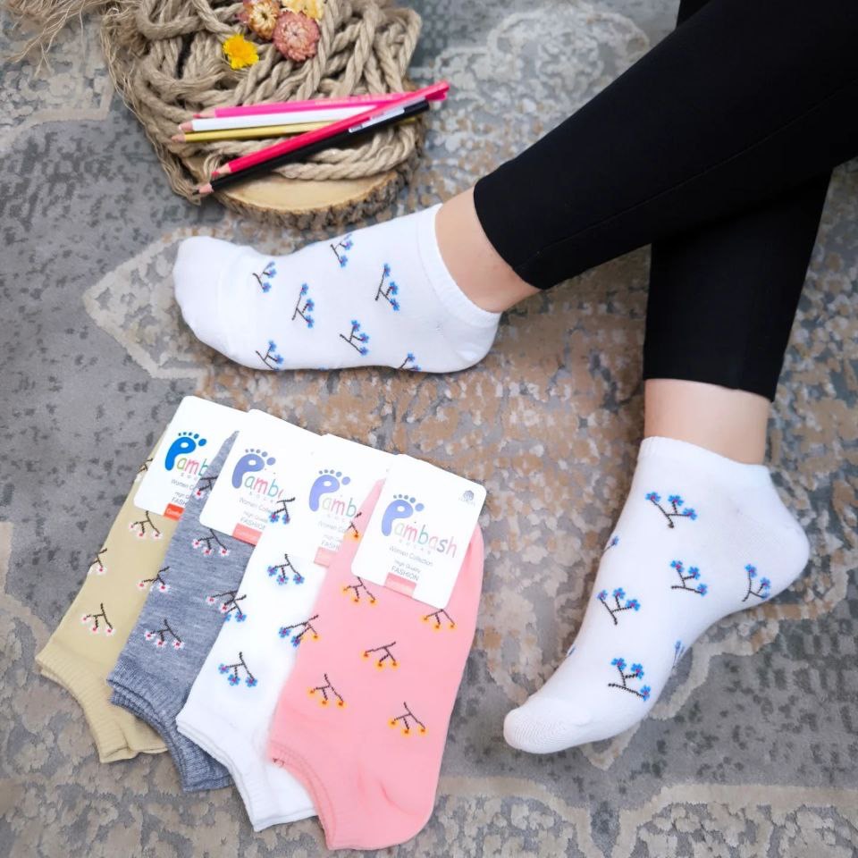 جوراب مچی طرح شکوفه از برند ایرانی پام باش،با طراحی ریزبافت ساه و شیک،مناسب سایز 36 تا 44